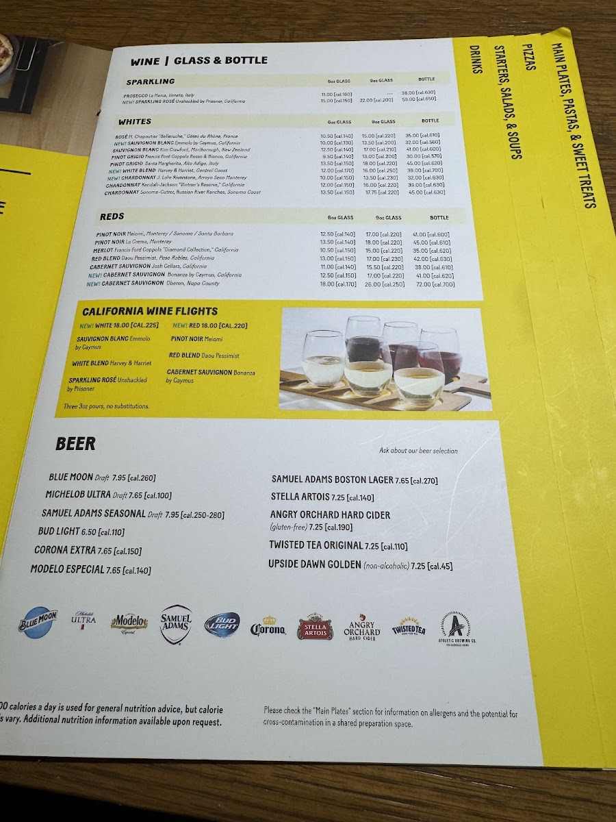Thai peanut sauce, grilled chicken, and Mozzarella, hearth-baked then topped with crisp bean sprouts, julienned carrots, slivered scallions, and fresh cilantro. [Calories listed are per slice. All pizzas are 6 slices.]